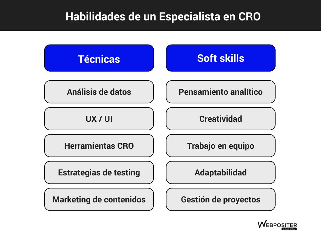 Además de las competencias técnicas, un buen especialista en CRO necesita una serie de habilidades blandas que marcan la diferencia a la hora de lograr resultados.